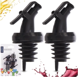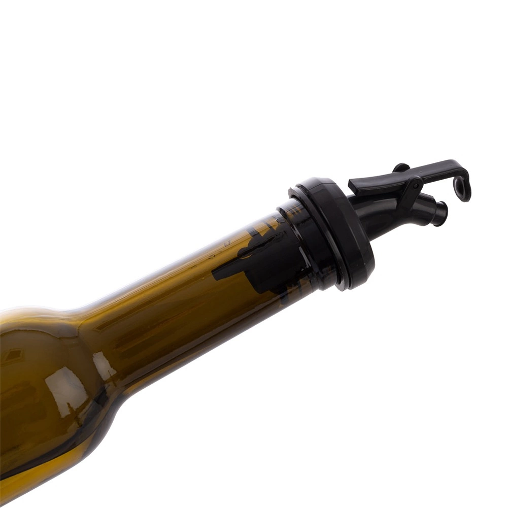 Compatible with most standard necks—suitable for oil, vinegar, syrups, wine, and spirits. Durable black design with a ribbed stopper ensures a tight fit and easy insertion and removal.
