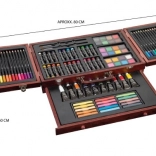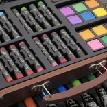 A complete art set in an elegant wooden case for beginner and advanced artists alike. It includes a wide selection of drawing and painting tools to bring your ideas to life. Inside you’ll find acrylic paints, watercolors, soft and oil pastels, colored and graphite pencils, brushes, and other essentials—everything neatly organized and easy to carry.