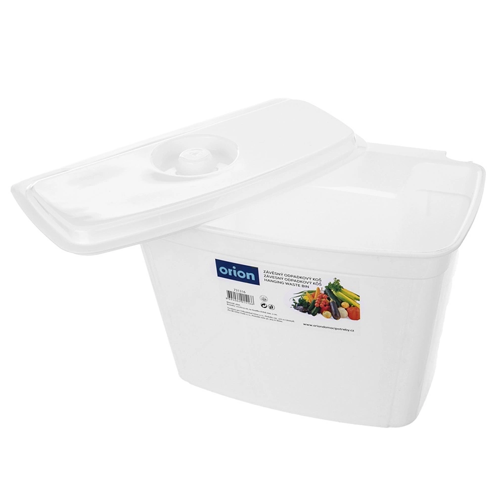 Save time and steps in the kitchen. Attach the hanging bin with lid directly to the top edge of a cabinet door under the worktop, so you can sweep scraps, peels, and organic waste straight from the cutting board into the bin. The lid minimizes odors, and the clean white design suits any kitchen.