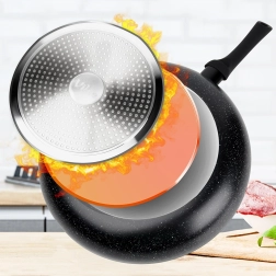 The induction base is suitable for gas, electric, ceramic, and induction. The pan is stable and efficient on every type of cooker.