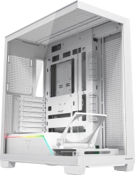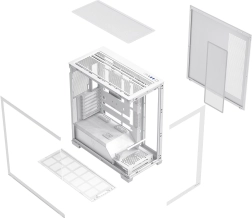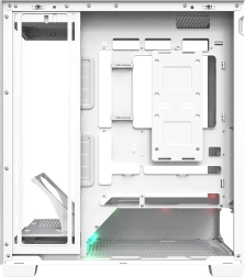 The case supports ATX/M-ATX/ITX motherboards as well as modern boards with reversed connectors (BTF). Thoughtful ventilation with multiple fan mounting options and a folding frame for a 120 mm fan lets you direct cool air straight to the graphics card. Demanding builds are catered for with support for radiators up to 360 mm on the top and side, and 120 mm at the rear.