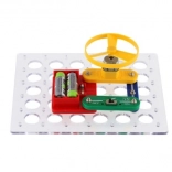 This educational electronics kit lets children assemble simple to more advanced circuits step by step following a clear guide. Thanks to the practical perforated base and color-differentiated parts, building is intuitive and safe.