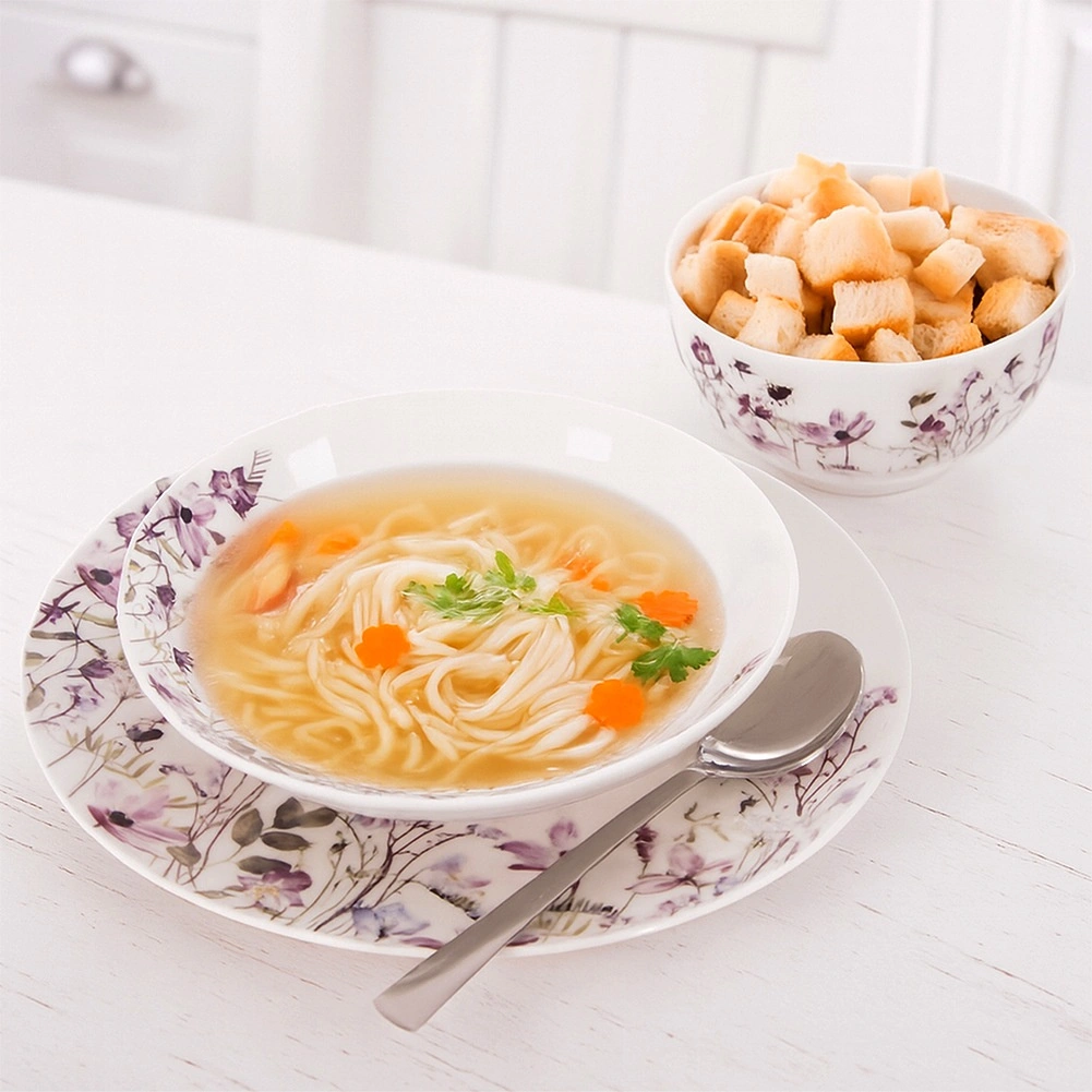 Delicate botanical motif on white porcelain turns every meal into a festive moment and pairs beautifully with natural accessories.