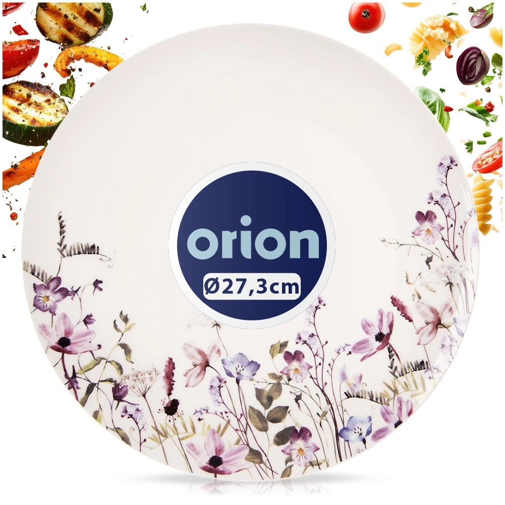 Elegant shallow plate with a diameter of 27 cm made of quality porcelain in white with a meadow flower pattern. Perfect for everyday dining and special occasions. It is dishwasher safe and microwave safe, has a classic round shape, and thanks to careful craftsmanship it will serve you for a long time. An original product by ORION.