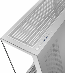 VOLCANO Stellar Midi NF is a spacious mid‑tower case in elegant white with front and side tempered‑glass panels for maximum component showcase. Thoughtful ventilation areas on the top, side, and bottom ensure smooth airflow, while the tilting frame for a 120 mm fan sends cool air directly to the GPU. The top I/O panel delivers fast connectivity with USB‑C and two USB 3.0 ports.
