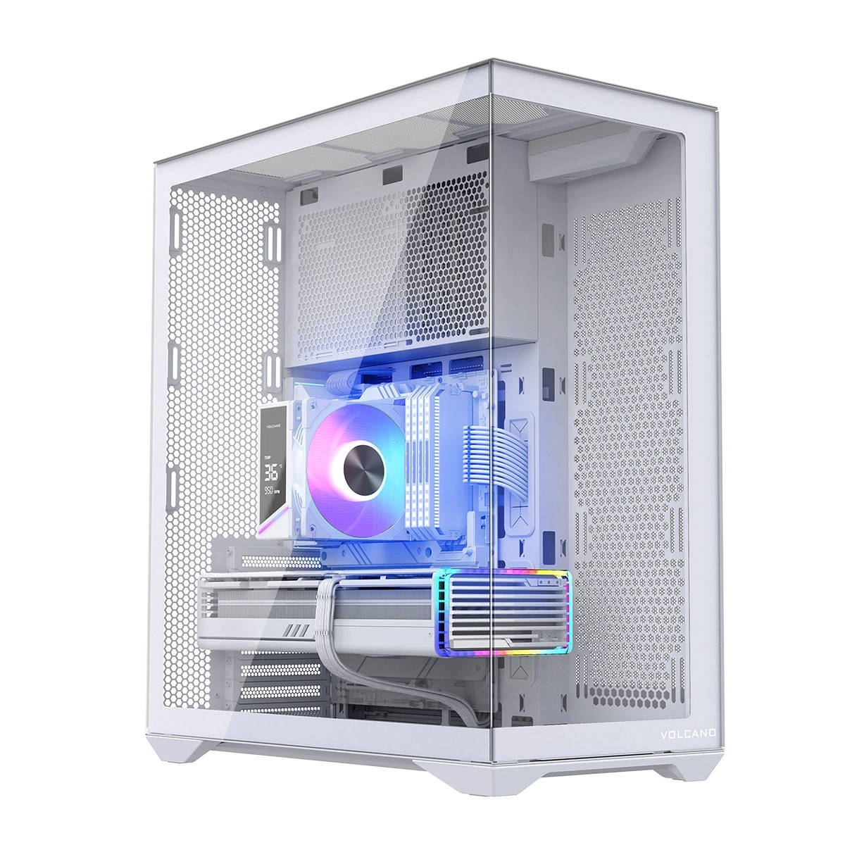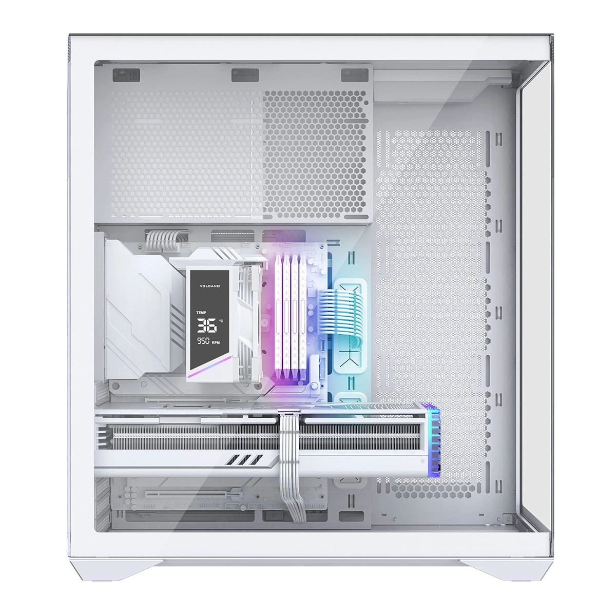 The front and side tempered glass panels turn your build into a display case — perfect for ARGB lighting and carefully matched components.