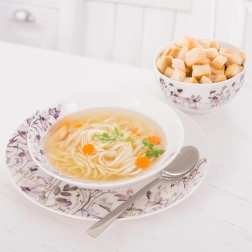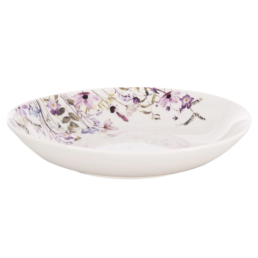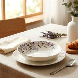 Thanks to its convenient depth and 600 ml capacity, you can comfortably serve soups, creams, pasta, or muesli. The quality porcelain is durable and easy to maintain — the plate is dishwasher safe and suitable for microwave reheating. Its classic round shape and floral motif pair easily with the rest of your tableware.