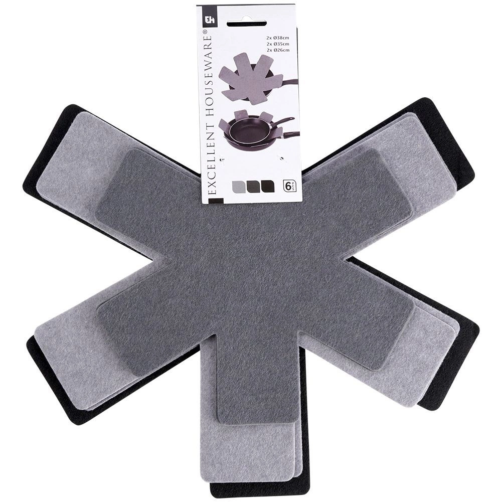 This set of six felt protectors is ideal for everyday home use. Just place the inserts between pans or pots to effectively protect their surfaces during stacking and transport. Thanks to three different diameters, you can easily adapt the inserts to various cookware sizes.