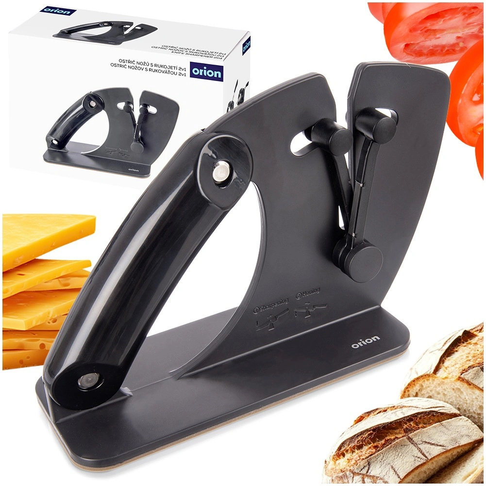The two modes give you full control: basic sharpening for quick edge restoration and fine finishing/honing for smoothing the edge. The non-slip silicone base and large ergonomic handle ensure maximum stability and safety. Durable carbide sharpening elements guarantee long service life and consistent results.