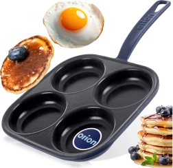 Four round cups (Ø 9 cm) keep eggs and batter precisely in place — ideal for pancakes and fried eggs with no fuss.