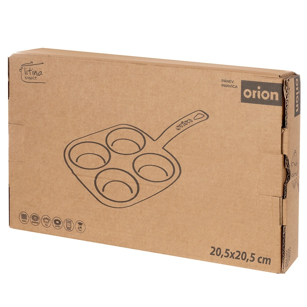 Practical square cast iron pan with 4 round molds (Ø 9 cm) for perfectly shaped eggs or pancakes. The enameled surface makes frying and cleaning easier, while cast iron distributes heat evenly and retains it for a long time. Suitable for gas, electric, ceramic, induction, and oven use, resistant to high temperatures and dishwasher safe.
