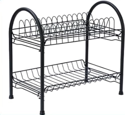 The upper level for plates and the lower for bowls or glasses speeds up drying and saves counter space.