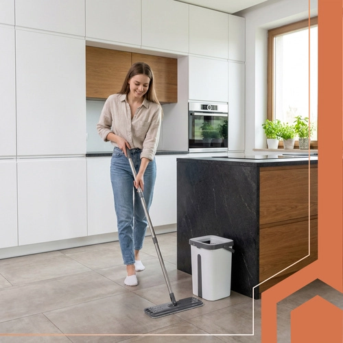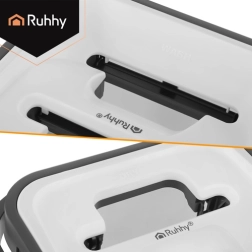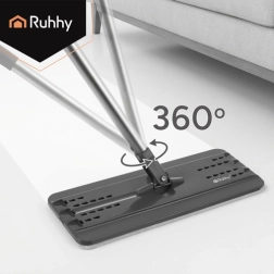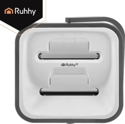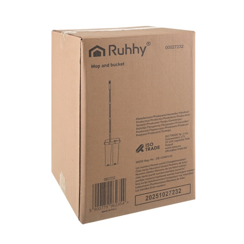 The practical RUHHY flat mop with a dual-chamber 11 L bucket ensures hygienic mopping with always-clean water. Thanks to hands-free wringing, your hands stay dry and floors are streak-free. The 360° swivel head reaches under furniture and into corners, and the 3 quick-dry pads enable uninterrupted cleaning.