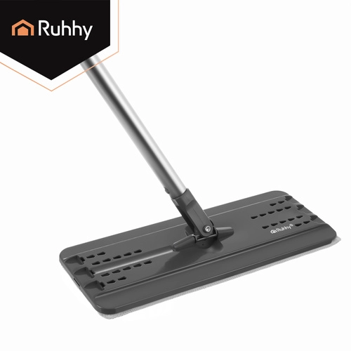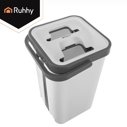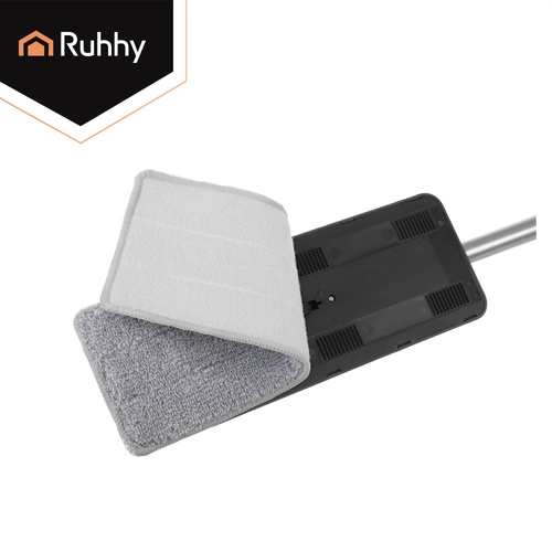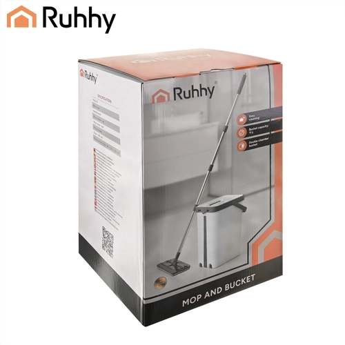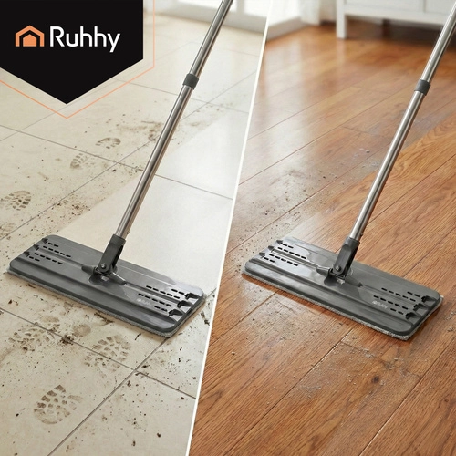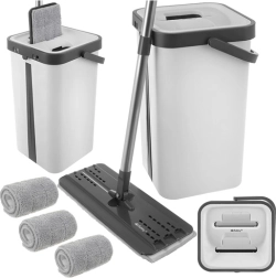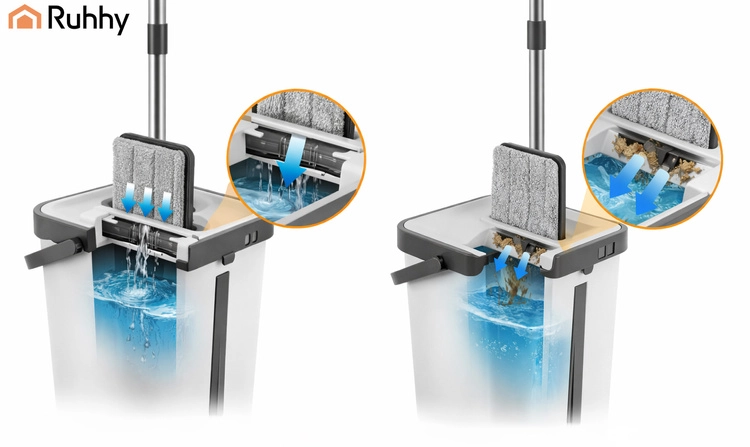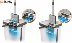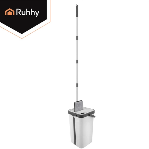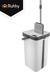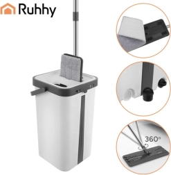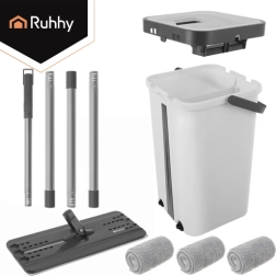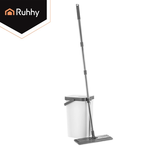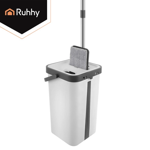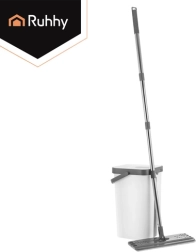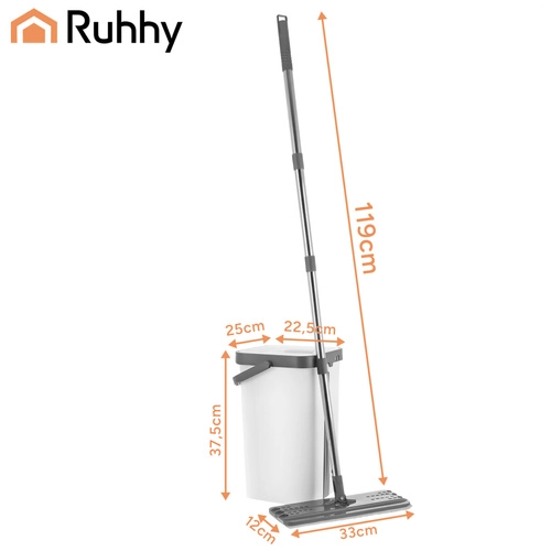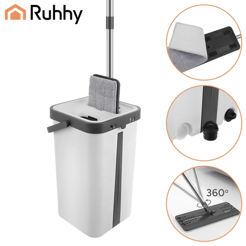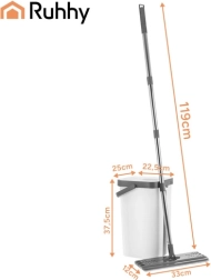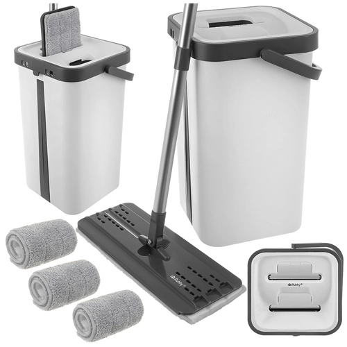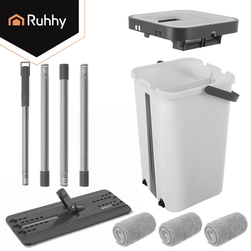 RUHHY Flat Mop with Dual-Chamber 11 L Bucket and 3 Microfiber Pads