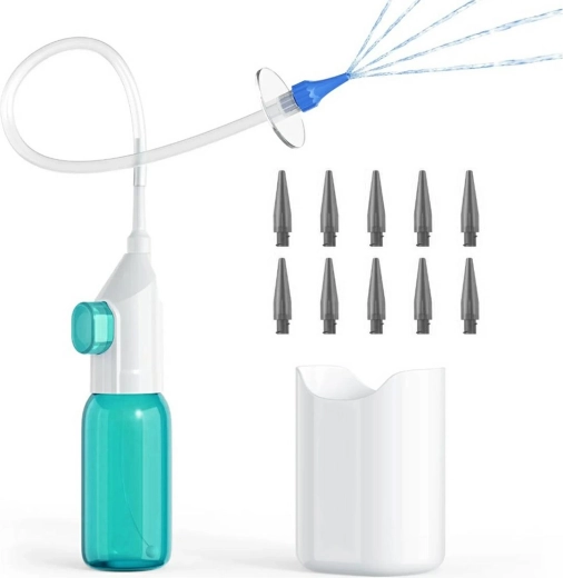 The set includes everything you need for hygienic use—disposable tips for different users and a handy container to collect used water. With its compact dimensions, the irrigator is ideal for home use and travel.