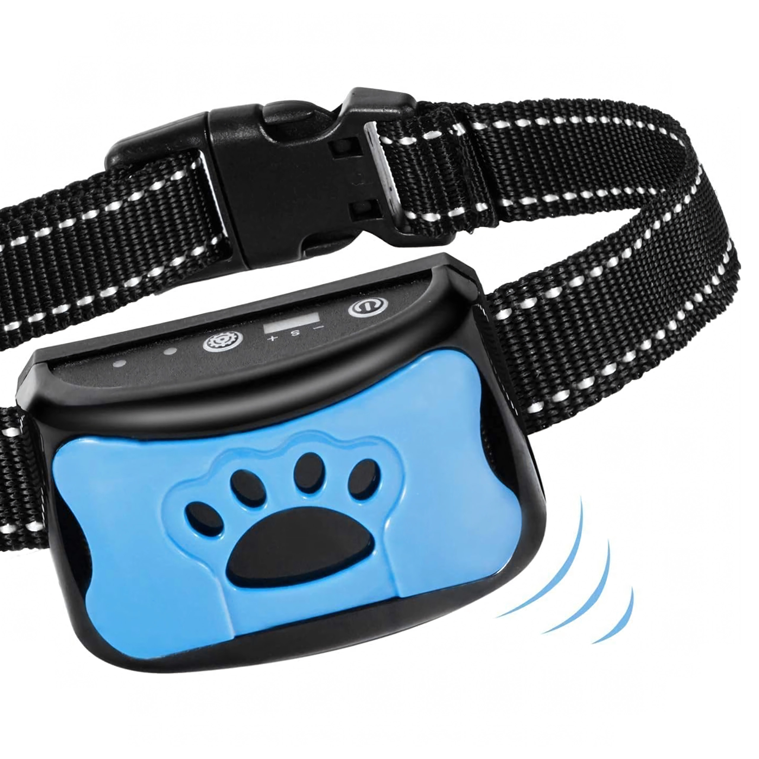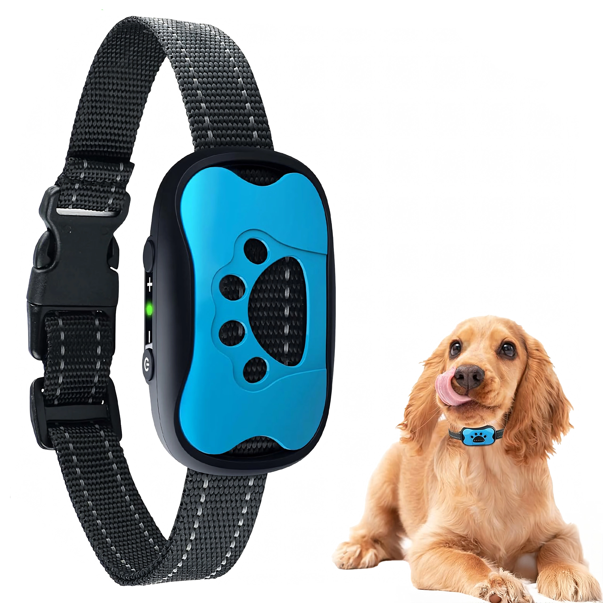 This modern anti-bark collar helps reduce unwanted barking and improve obedience without physical punishment. The compact unit with a paw-print design offers multiple training modes (sound, vibration) and responsive bark detection to react precisely when needed.