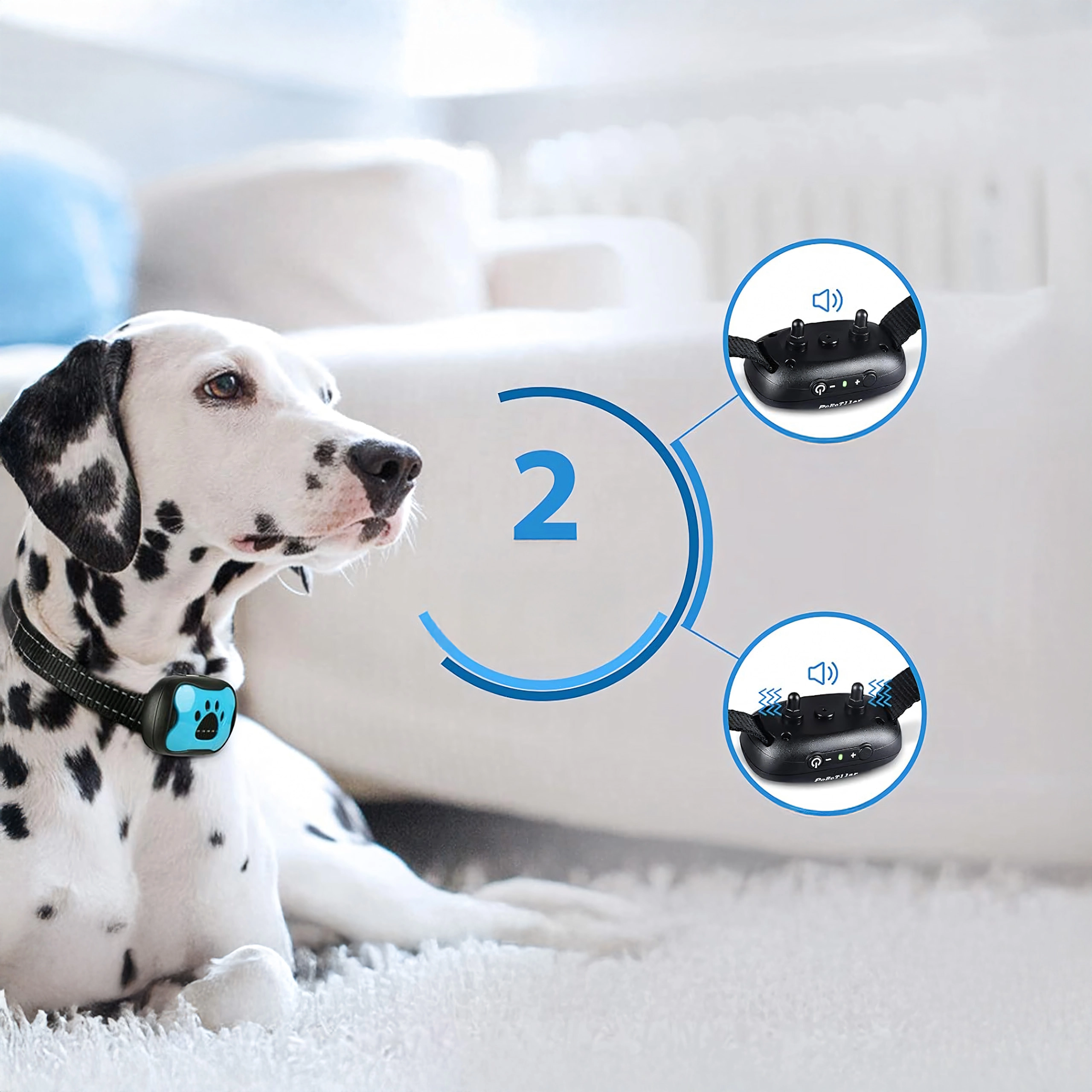 • Humane and effective training – sound and vibration help correct barking gently.