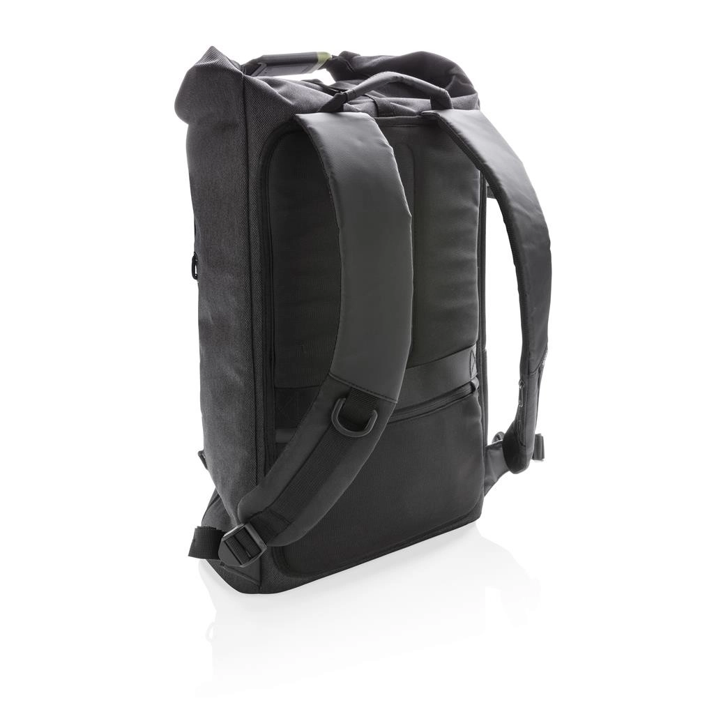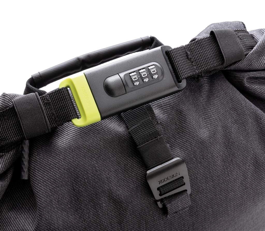 A minimalist and durable roll-top backpack that combines modern looks with thoughtful security. The steel closure with a numeric code protects the main compartment, while hidden pockets with RFID protection keep your cards and documents safe. Front and side zippers provide quick access to small items without opening the entire backpack.