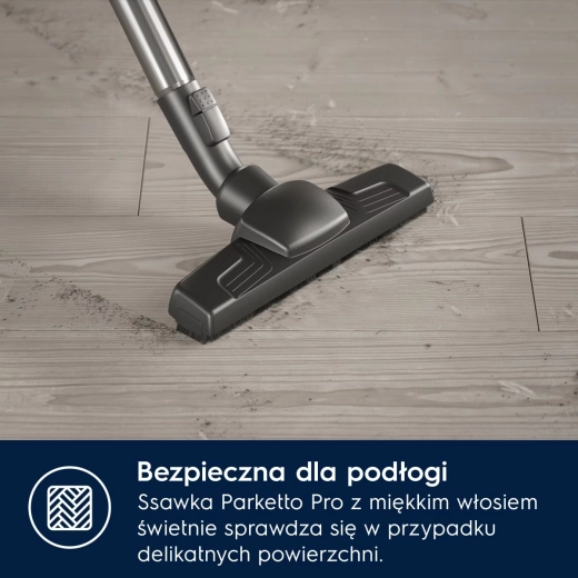 Practical foot controls let you change power, rewind the cord, or switch on and off without bending. Large, easy-rolling wheels ensure smooth movement across different floor types, and the 12-meter reach minimizes the need to switch outlets. The vacuum is also eco-friendly—up to 50% of the plastics are recycled, and the packaging respects the environment.