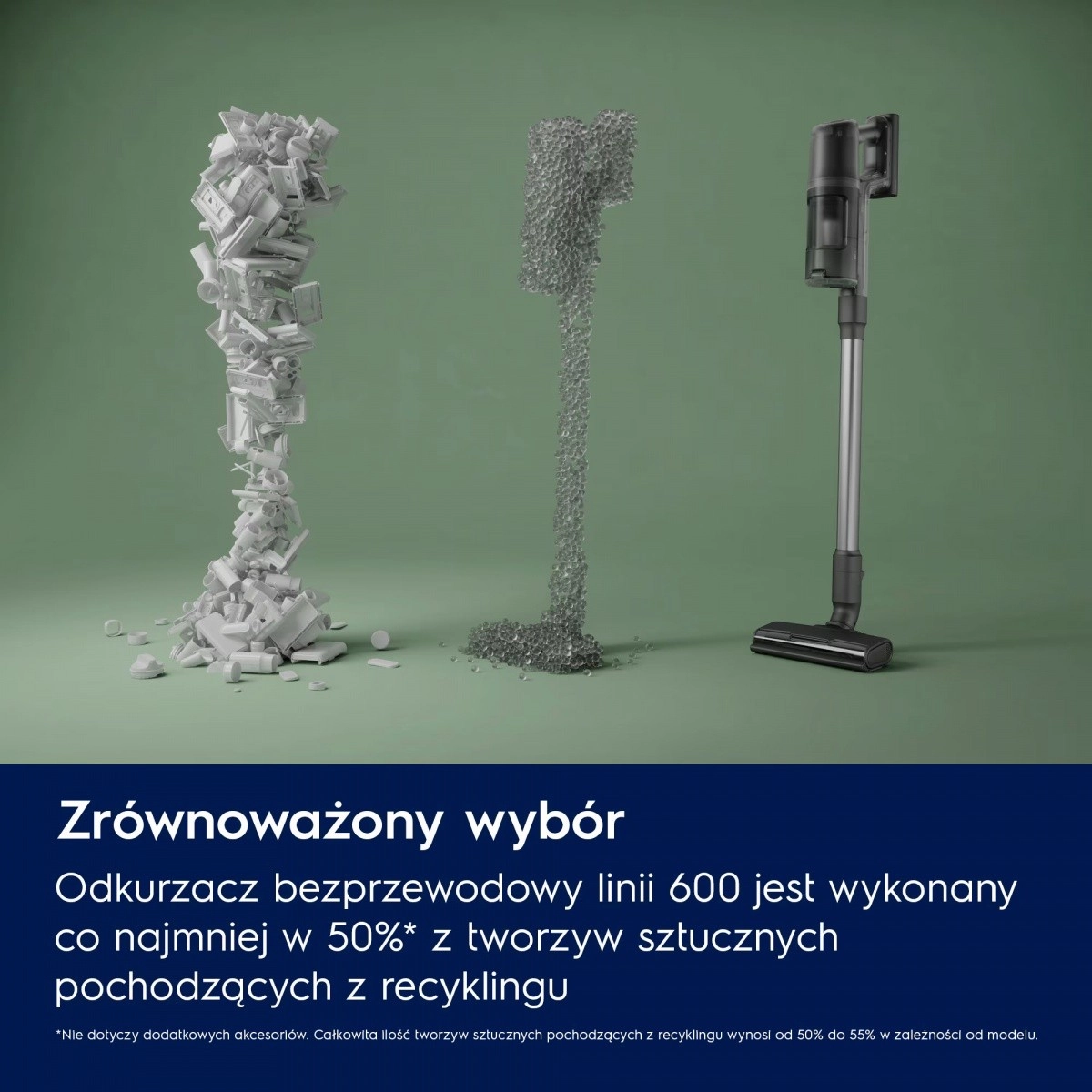 The cordless design with a high-quality 6-cell battery provides up to 50 minutes of operation in handheld mode. Quick handle release and easy accessory switching ensure a smooth transition between floors, corners, and upholstery. Hygienic one-button emptying of the 0.5 L bin minimizes contact with dust and keeps your home clean.