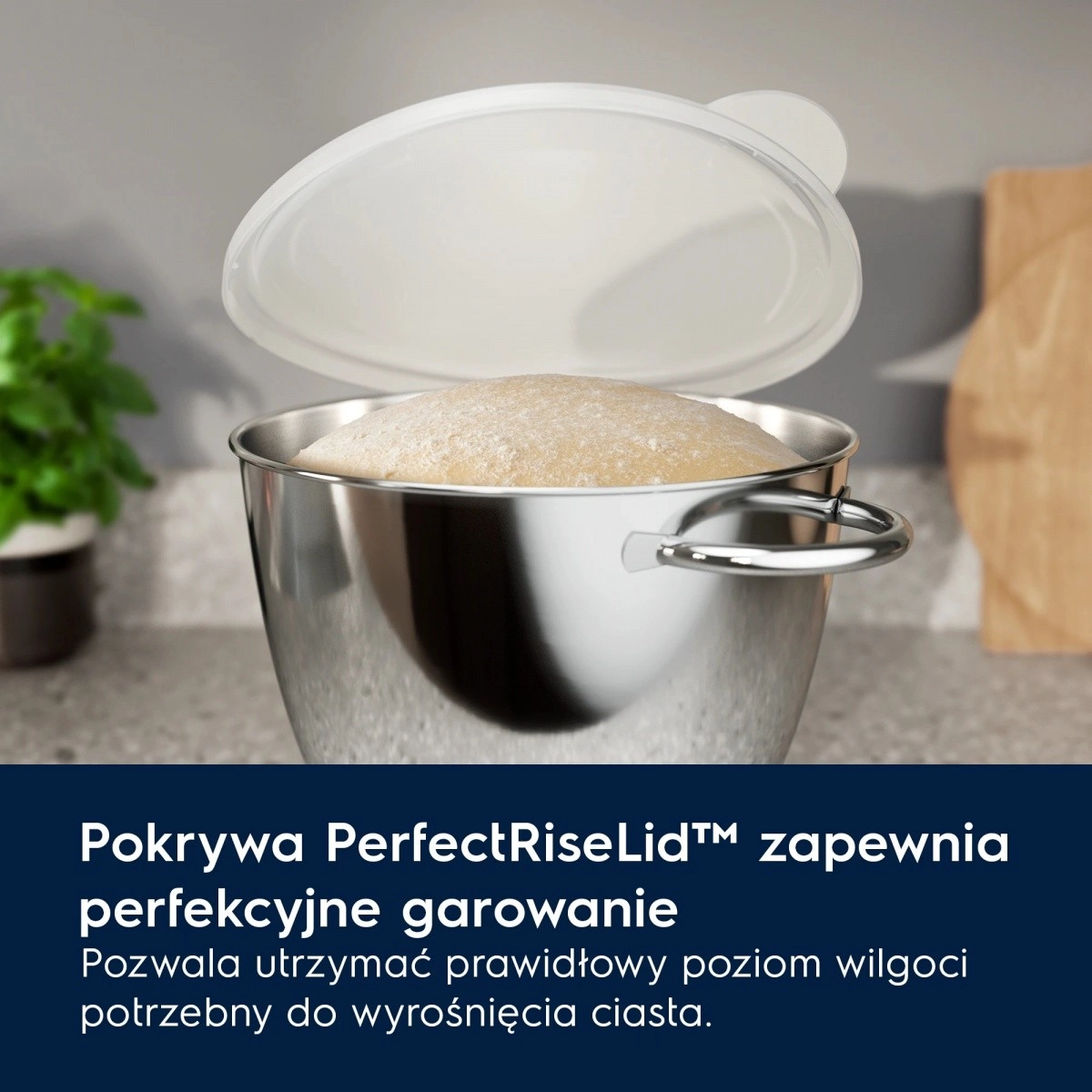 Integrated planetary mixing incorporates all ingredients evenly and speeds up dough preparation by up to 20%. Thanks to the LED lighting, you have perfect control over the mixture’s consistency even in lower light, and the PerfectRiseLid provides ideal proofing conditions—proper air circulation and humidity without drying out the surface.