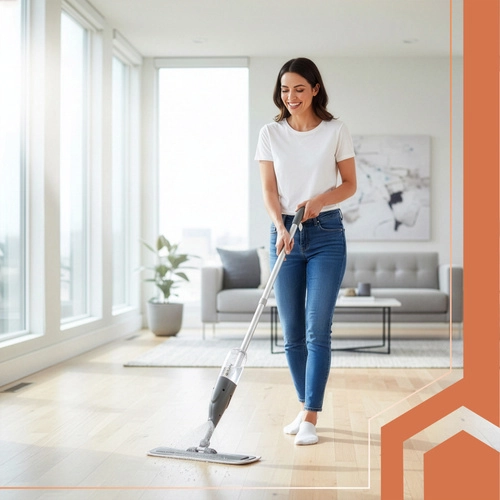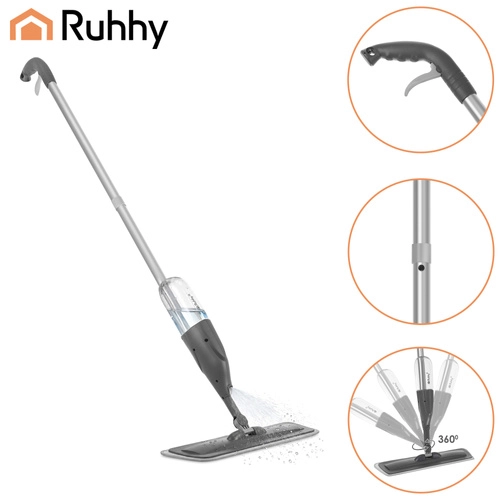 A practical RUHHY spray mop with a 300 ml integrated tank and a 360° rotating head speeds up daily cleaning without a bucket. Its lightweight ergonomic design, wide cleaning panel, and 3 washable pads ensure effective removal of dust, dirt, and hair on various floor types.