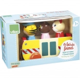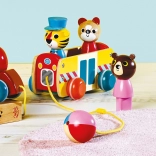 This pull-along bus is made from quality wood and offers not only fun but also a challenge for young thinkers. With vibrant colors and animals that can be inserted and removed, it supports child development in several areas: