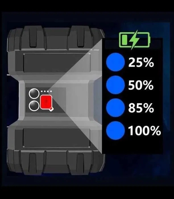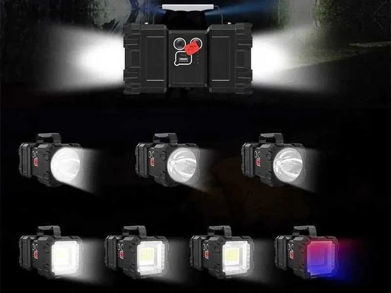 Looking for a universal light for the workshop, construction, camping, or the car in case of emergencies? This dual-sided rechargeable flashlight combines a powerful long-range beam with a wide work light. It delivers 1200 lumens, a beam distance of up to 800 meters, and up to 20 hours of runtime on a single charge. With the integrated power bank, you can easily recharge your phone or other devices via USB.
