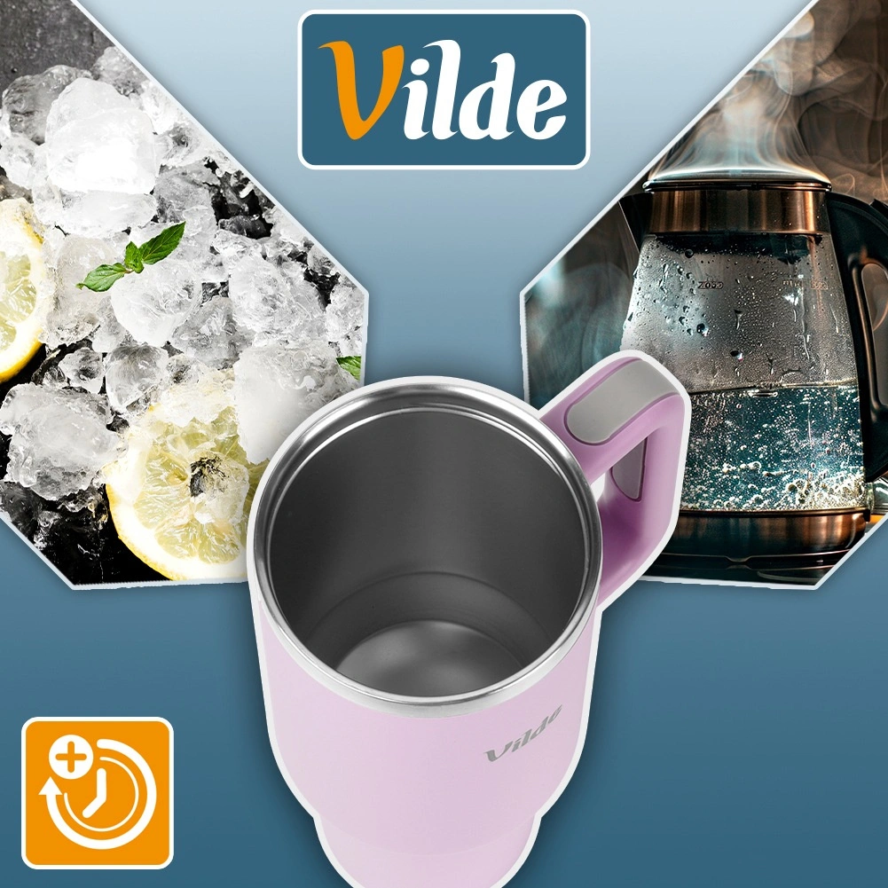 This practical 1.2 l travel thermal mug is designed for maximum comfort when drinking in any conditions. Thanks to quality stainless steel and vacuum insulation, it maintains a stable beverage temperature for many hours. The tapered bottom fits common car cup holders and the robust handle ensures a secure grip on the go.