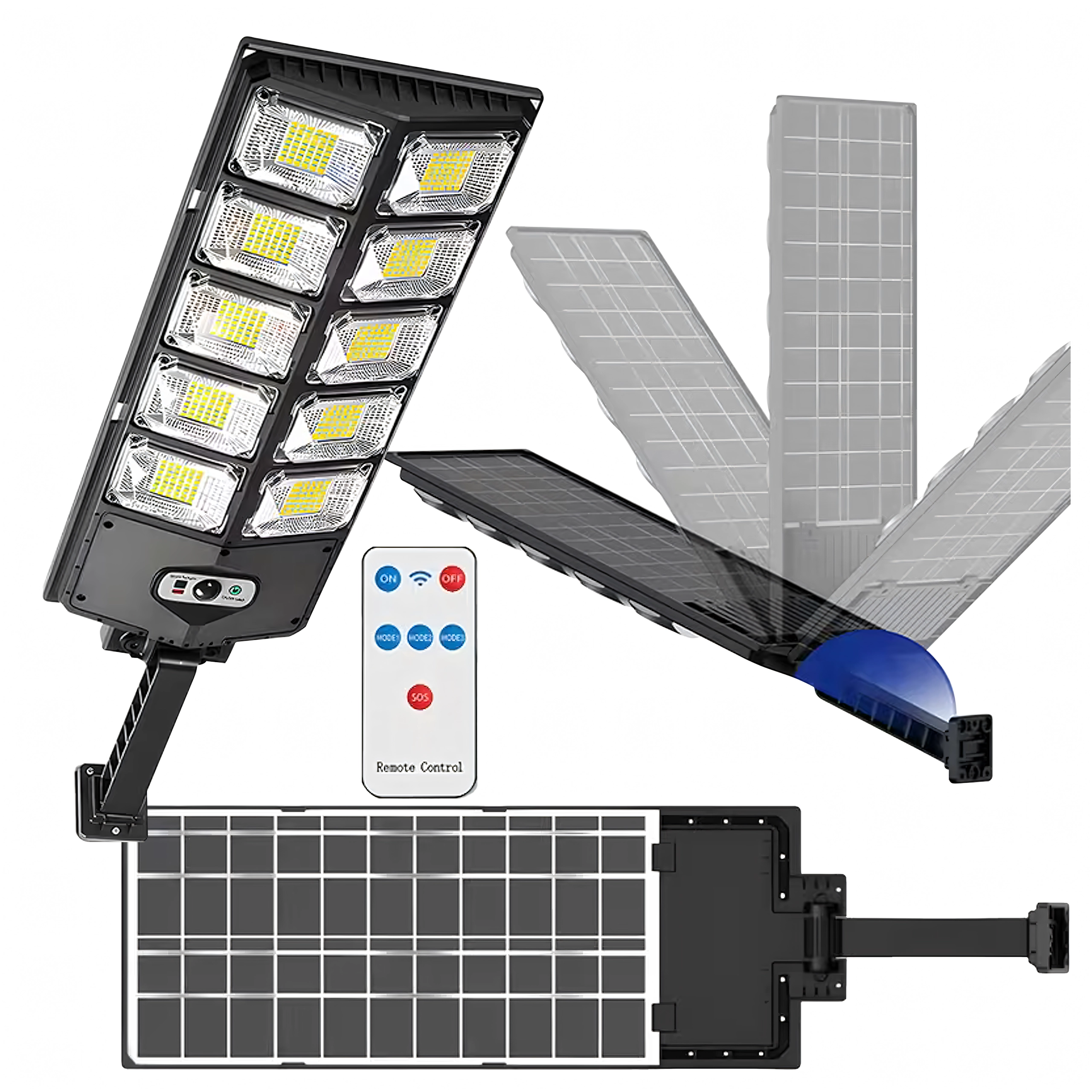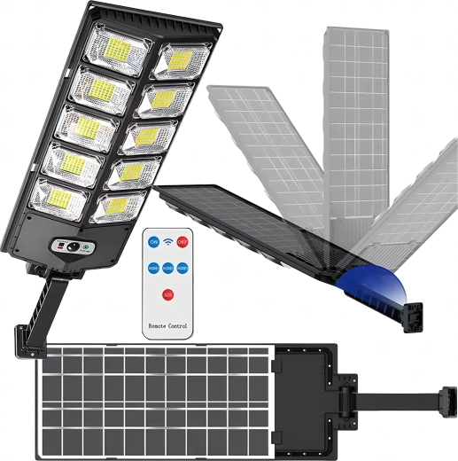 The outdoor solar LED lamp provides reliable lighting for your garden, driveway, or yard without the need for electrical wiring. With an integrated solar panel, a dusk sensor, and a motion sensor, the light turns on automatically, saves energy, and delivers a strong, wide beam. A remote control is included for convenient control of modes and timers.