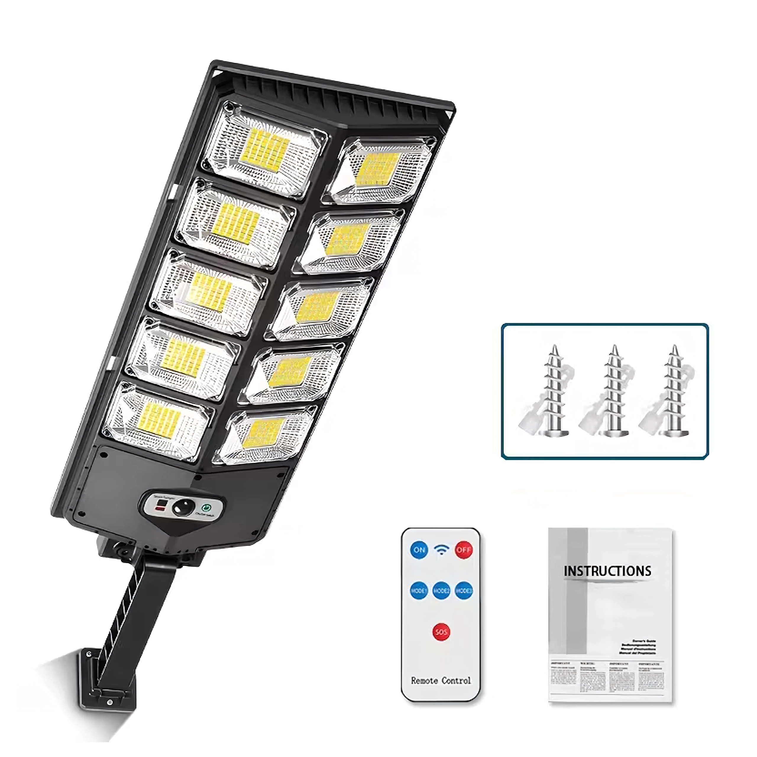 With the included remote control, you can easily set brightness, timer, and operating modes (automatic, constant lighting, eco). The lamp is ideal for lighting gardens, patios, driveways, walkways, and yards, and can be mounted on a wall or pole.