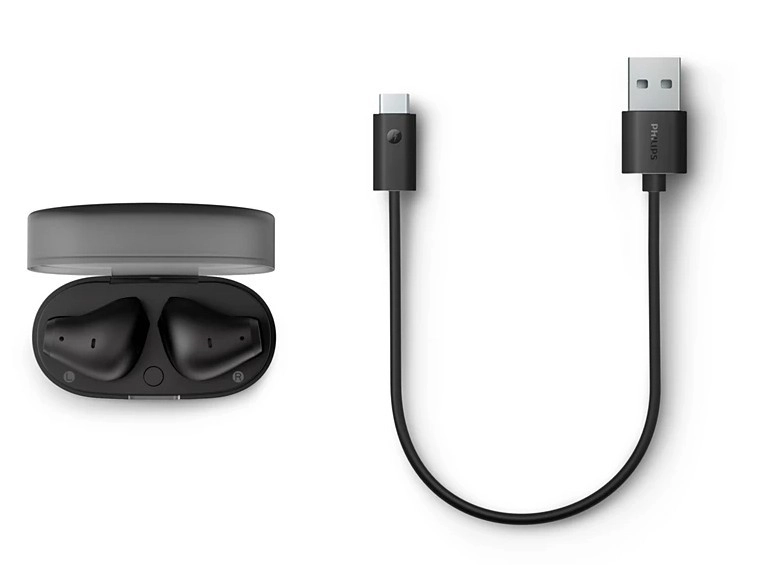 Looking for comfortable wireless earbuds without pressure in the ear canal? These PHILIPS true wireless earbuds sit in the outer ear, feature slim stems for a secure fit, and thanks to 13 mm drivers they sound warm, natural, and with pronounced bass. The Dynamic Bass function boosts low frequencies even at quiet listening levels.