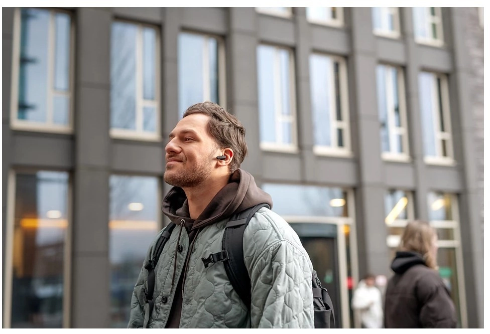 The ergonomic design rests in the outer ear without inserting into the ear canal. No pressure even after hours of listening – ideal for everyday use.