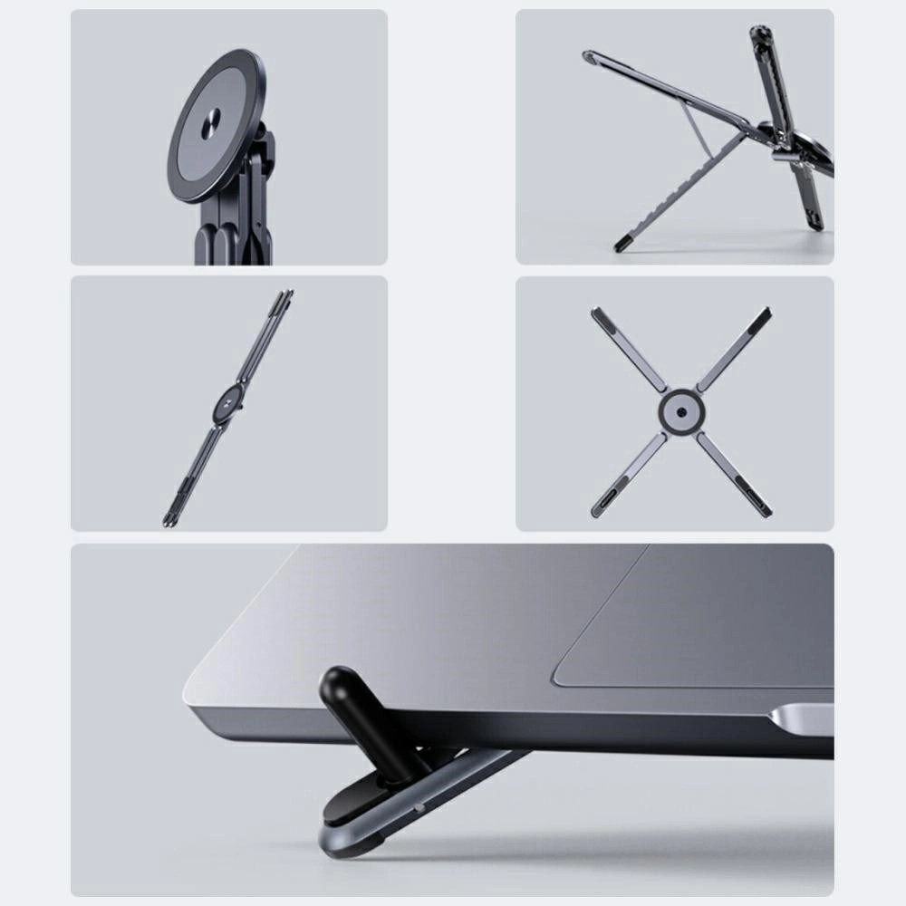 Smart design features like anti-slip pads and ventilation openings increase stability and help airflow for better cooling of your laptop. The stand folds down in seconds to a compact size, making it ideal for backpacks and briefcases.