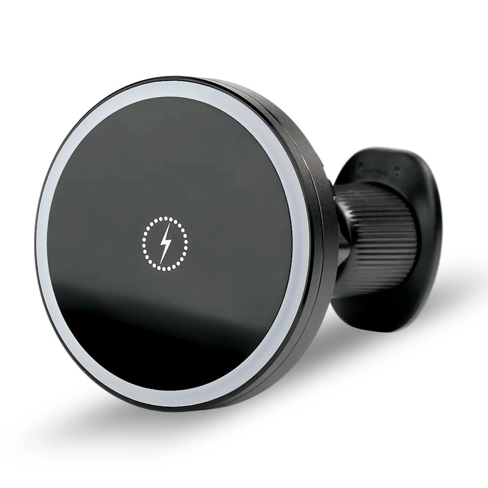 Enjoy safe hands-free phone use on the road. The everActive magnetic mount with Apple MagSafe support provides instant attachment for compatible iPhones and stable 15 W wireless charging without cable clutter. The compact circular body with an LED ring clearly indicates power status.