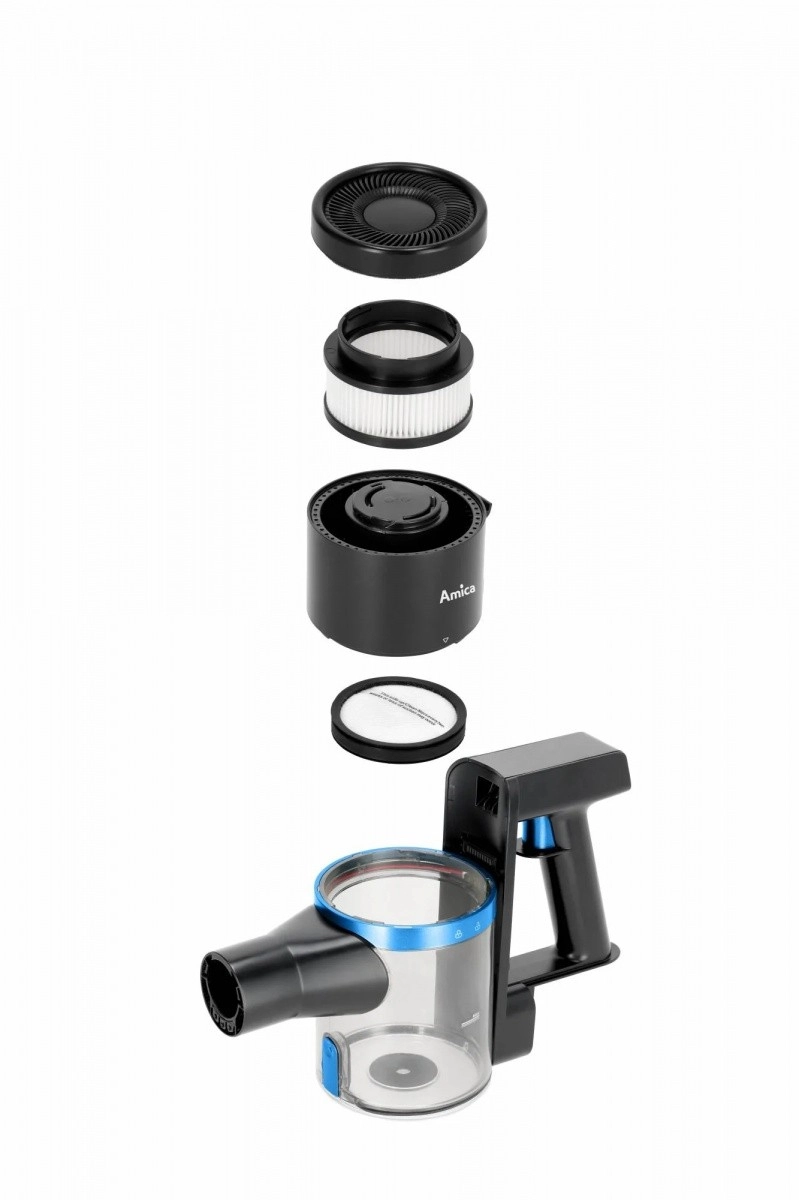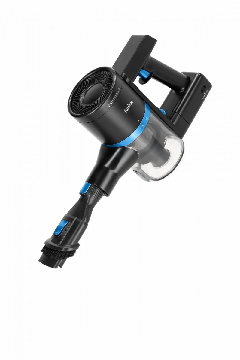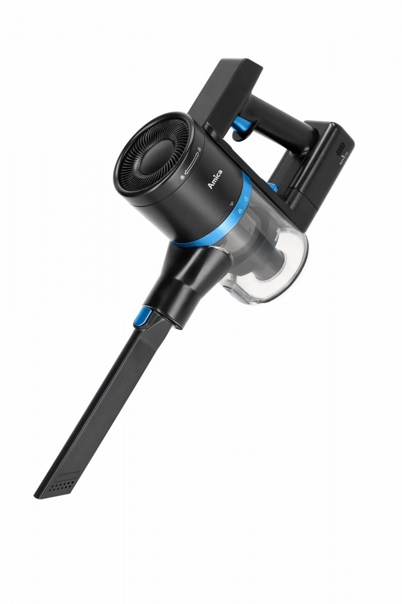 The lightweight and powerful AMICA VGB 6010 stick vacuum offers cordless operation, a replaceable Li‑ion battery, up to 30 minutes of runtime on a single charge, and an electric brush with LED lighting for precise cleaning even in dark corners. Thanks to the EPA filter, electronic power control, and low weight, it’s ideal for quick, everyday cleaning of hard floors and carpets.