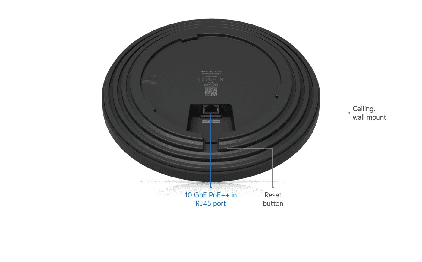 For network connectivity, the device offers a flexible multi‑gigabit 10/5/2.5/1 GbE interface that unlocks the full potential of Wi‑Fi 7’s high speeds. Discreet ceiling mounting ensures unobtrusive deployment with quality coverage, ideal for offices, schools, hotels, and modern households.