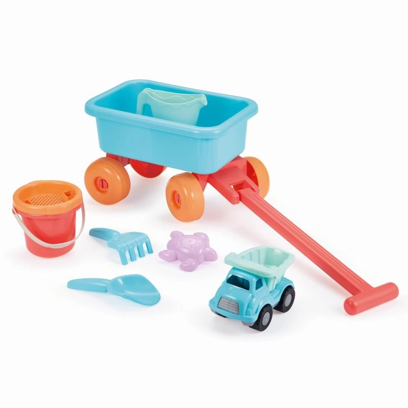 Enjoy summer to the fullest with this practical kids’ sand play set. The easy-to-maneuver trolley with a swiveling handle lets children transport toys, sand, and water with ease. The set includes everything needed for creating and playing in the sandbox or by the sea.