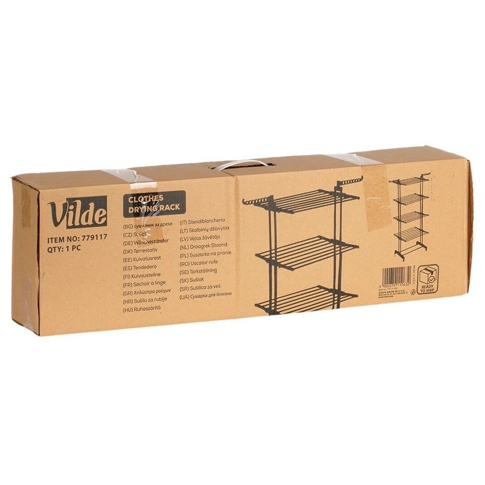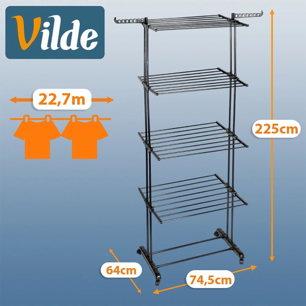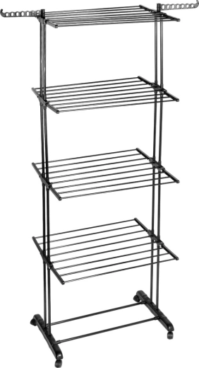The rack offers 4 tiers, 8 independently foldable wings, and a total of 32 rods. You get up to 22.7 m of drying surface for efficient, organized drying of an entire load of laundry.
