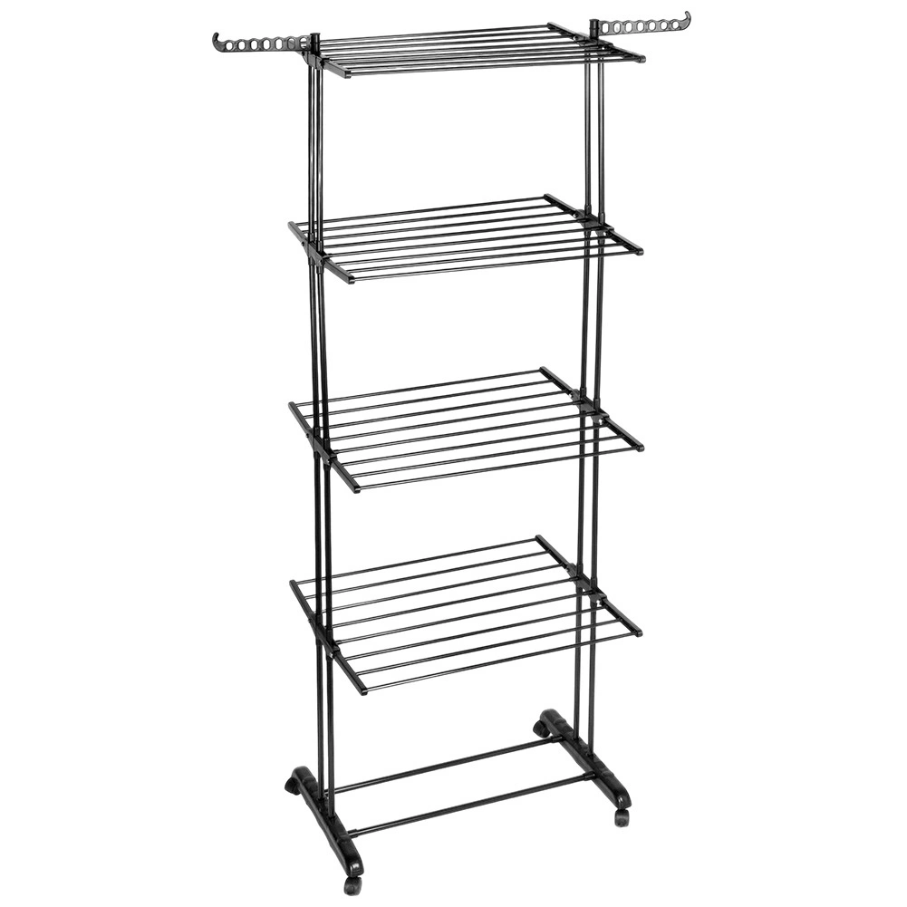 Maximize your drying space with this roomy vertical rack in elegant black. Four tiers, eight independently foldable wings, and side arms for hangers let you adapt capacity to the current laundry load. The total drying area reaches 22.7 m, and the 25 kg load capacity handles heavier textiles.