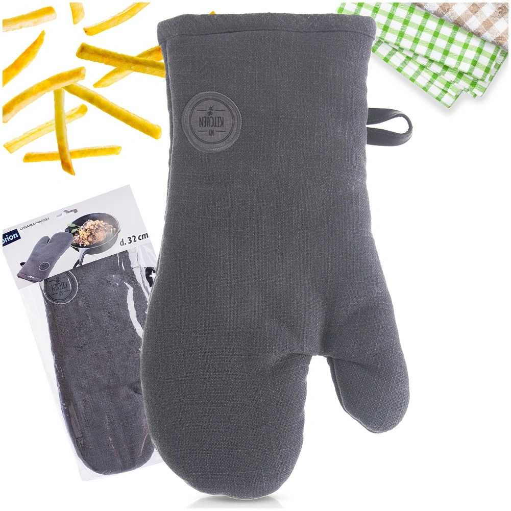 This durable 100% cotton kitchen mitt is designed for everyday use. Thanks to its thick padding and extended wrist section, you can safely carry hot roasting pans, pots, and baking tins from the oven. The universal size 17.5 × 32 cm fits both right and left hands and sits securely in the palm.