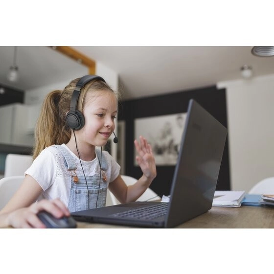 The in‑line controller on the durable 2 m braided cable makes quick muting and volume adjustment easy. The 270° rotating microphone can be worn on the left or right. 40 mm stereo drivers provide balanced sound, while a safe volume limit (EN 50332‑2) protects hearing during prolonged use.