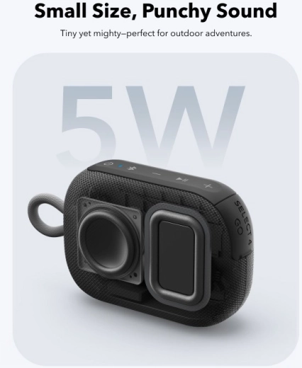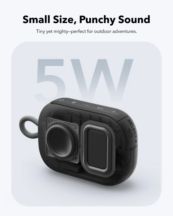 Soundcore Select 4 Go is the ideal companion for travel, trips, and home listening. The compact body hides a clean and dynamic 5 W sound that impresses with its richness for the size. Thanks to up to 20 hours of battery life, you can enjoy music all day without recharging.