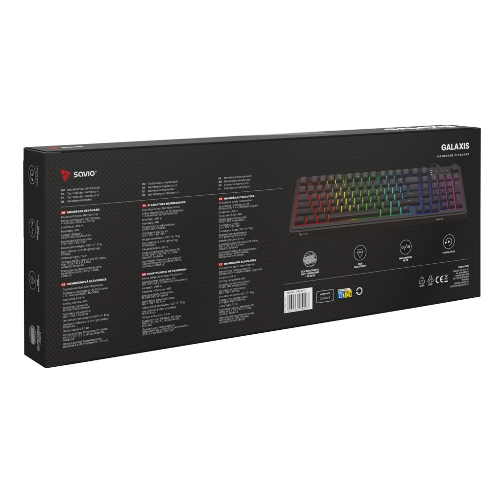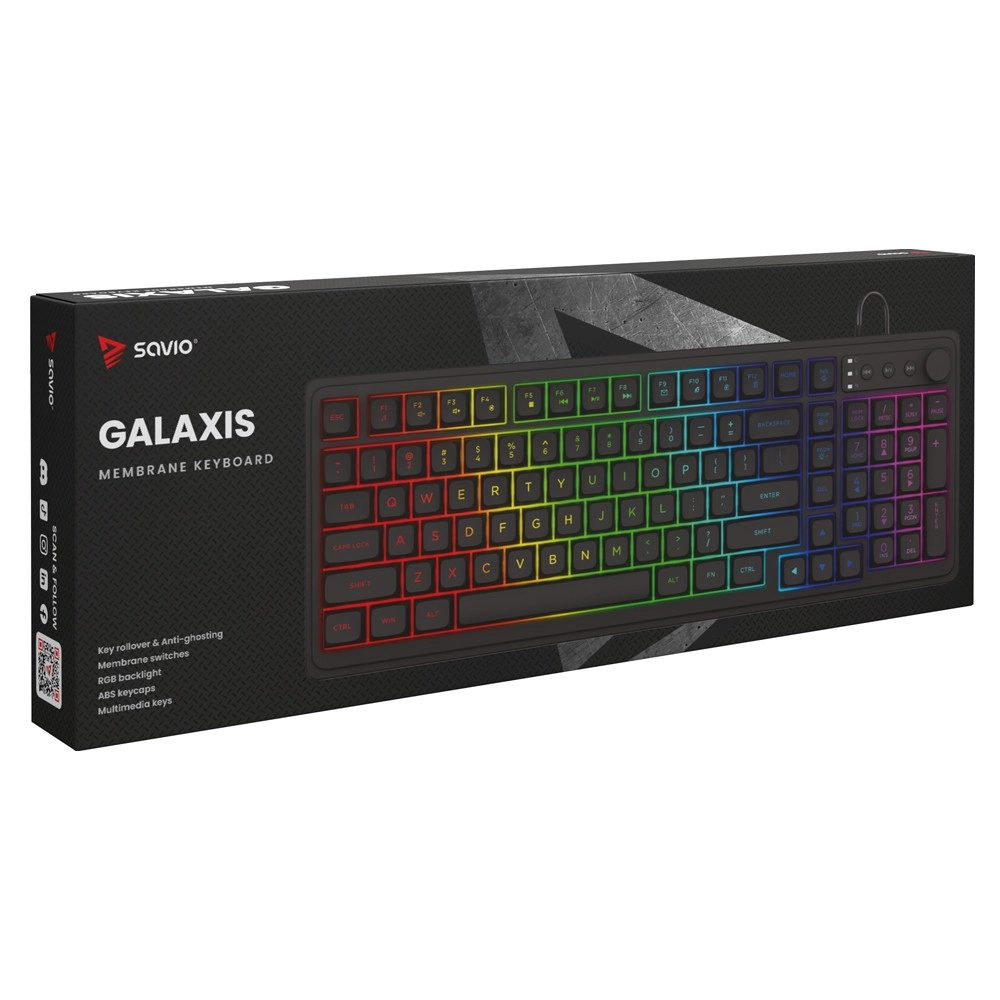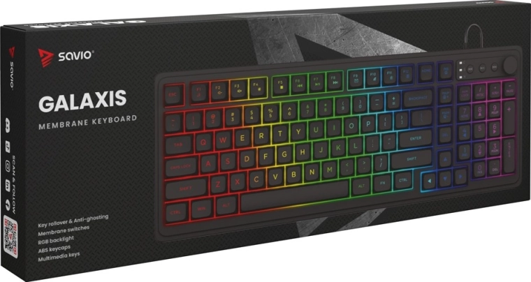 Elevate your gameplay with the GALAXIS – a reliable membrane keyboard with RGB backlighting, 19-key rollover, and anti-ghosting. It offers quiet, durable switches, ABS keycaps, and multimedia keys for quick control of sound and media.
