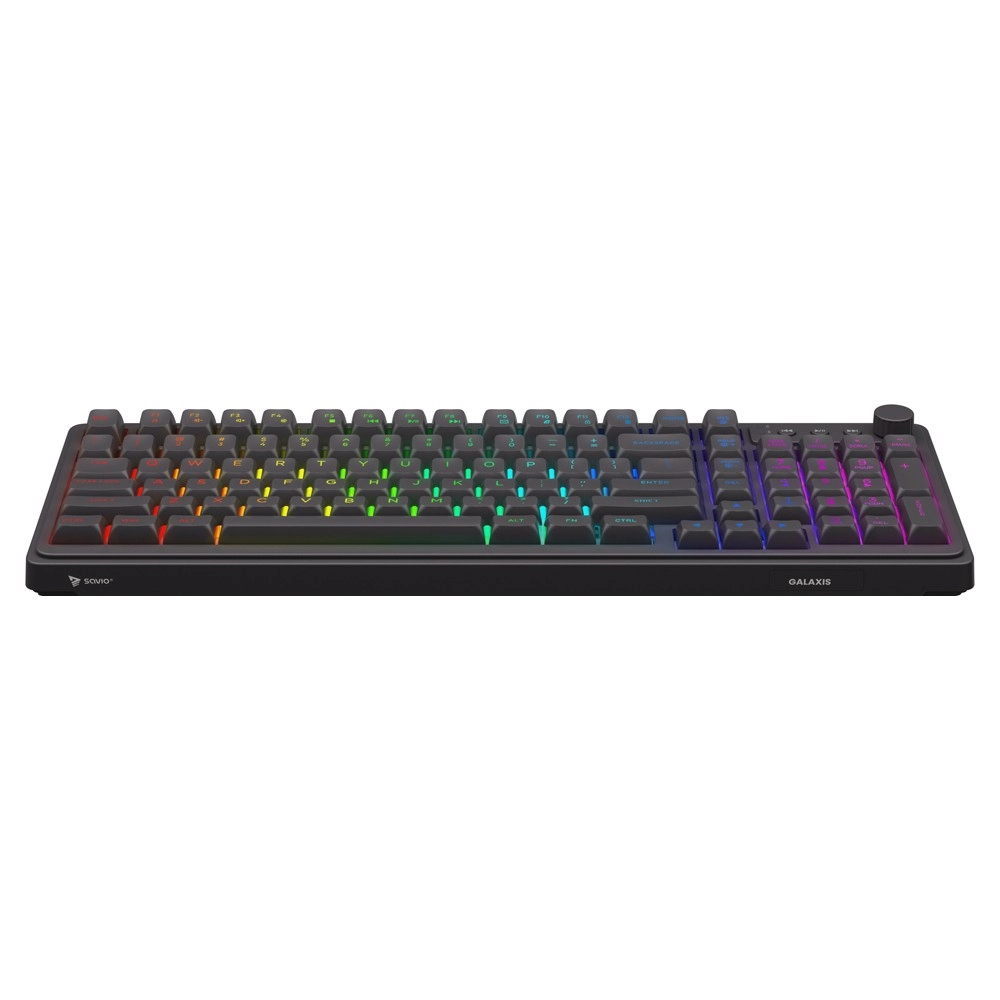 The GALAXIS gaming keyboard combines ergonomics, design, and reliability for smooth control in games and at work. The multicolor RGB backlighting highlights your setup and improves visibility in the dark, while the quiet membrane switches ensure comfortable typing without disturbing others.