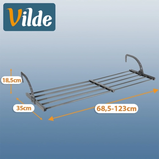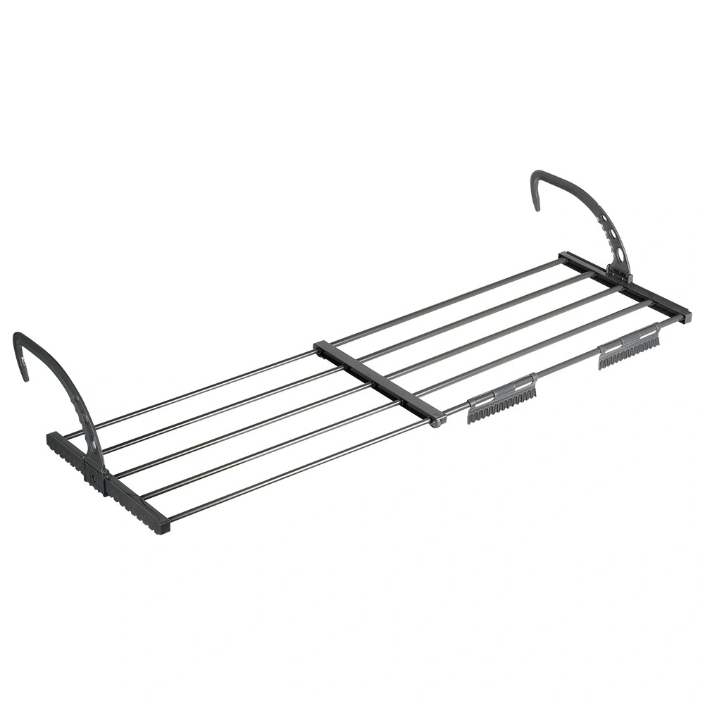 Adjustable, foldable hooks fit securely on heaters (max. 13 cm) or balcony railings. Quick, tool-free installation.