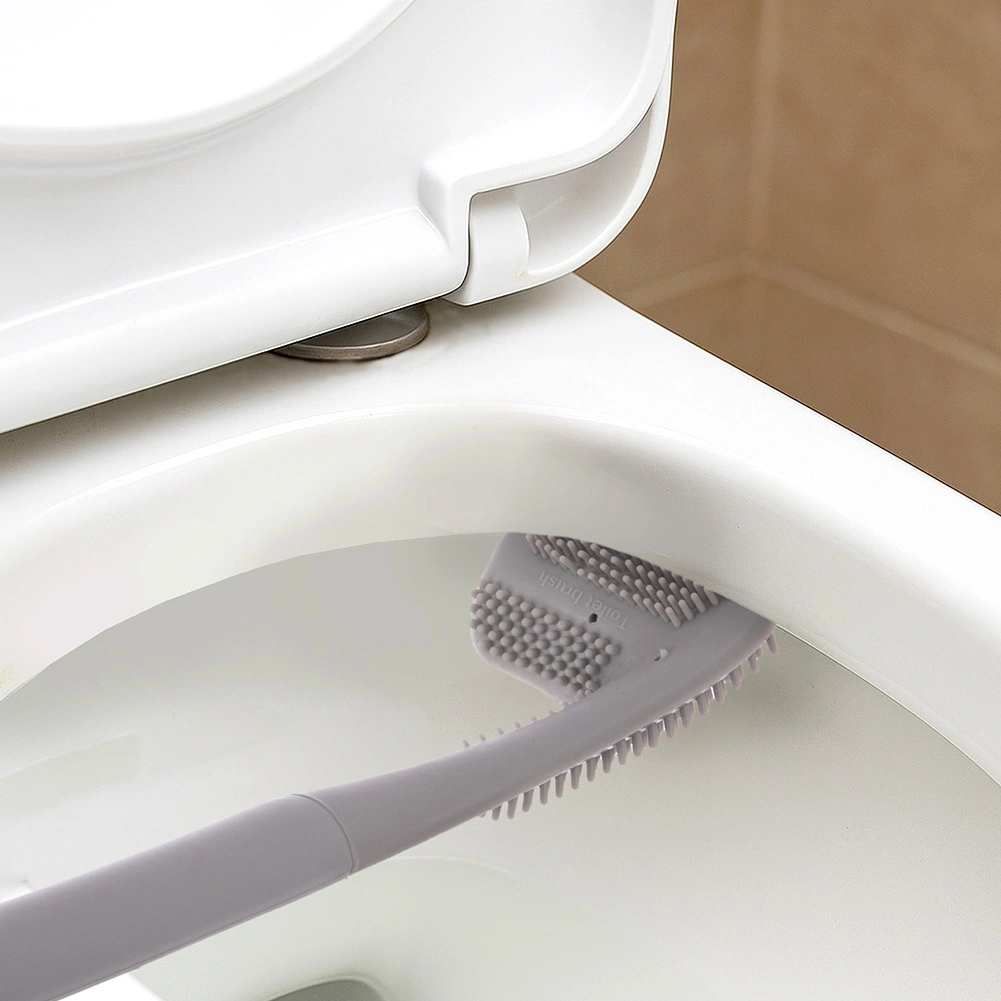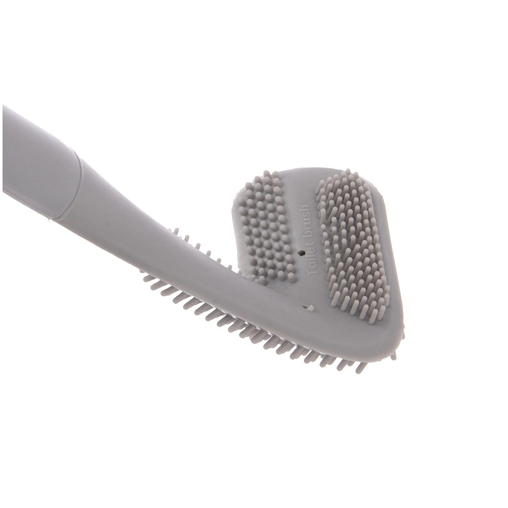 Silicone toilet brush in an elegant gray color for everyday toilet hygiene. Flexible silicone bristles do not deform, do not trap dirt or bacteria, and rinse easily. An ergonomic handle and a curved head allow cleaning under the rim of the bowl. Thanks to the hole at the end of the handle, it can be hung to save space.