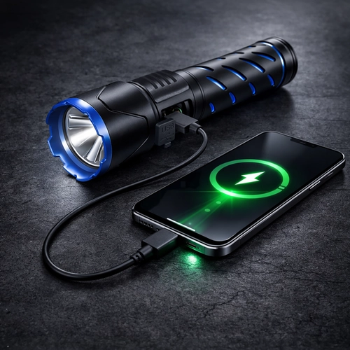 Thanks to the 21700 battery with 5000 mAh capacity, the flashlight delivers 3–12 hours of operation (depending on the mode). Charging via USB‑C is quick and convenient, and there is also a USB output for power bank function. The digital display on the flashlight body shows the current battery level so you always know when it’s time to recharge.