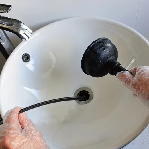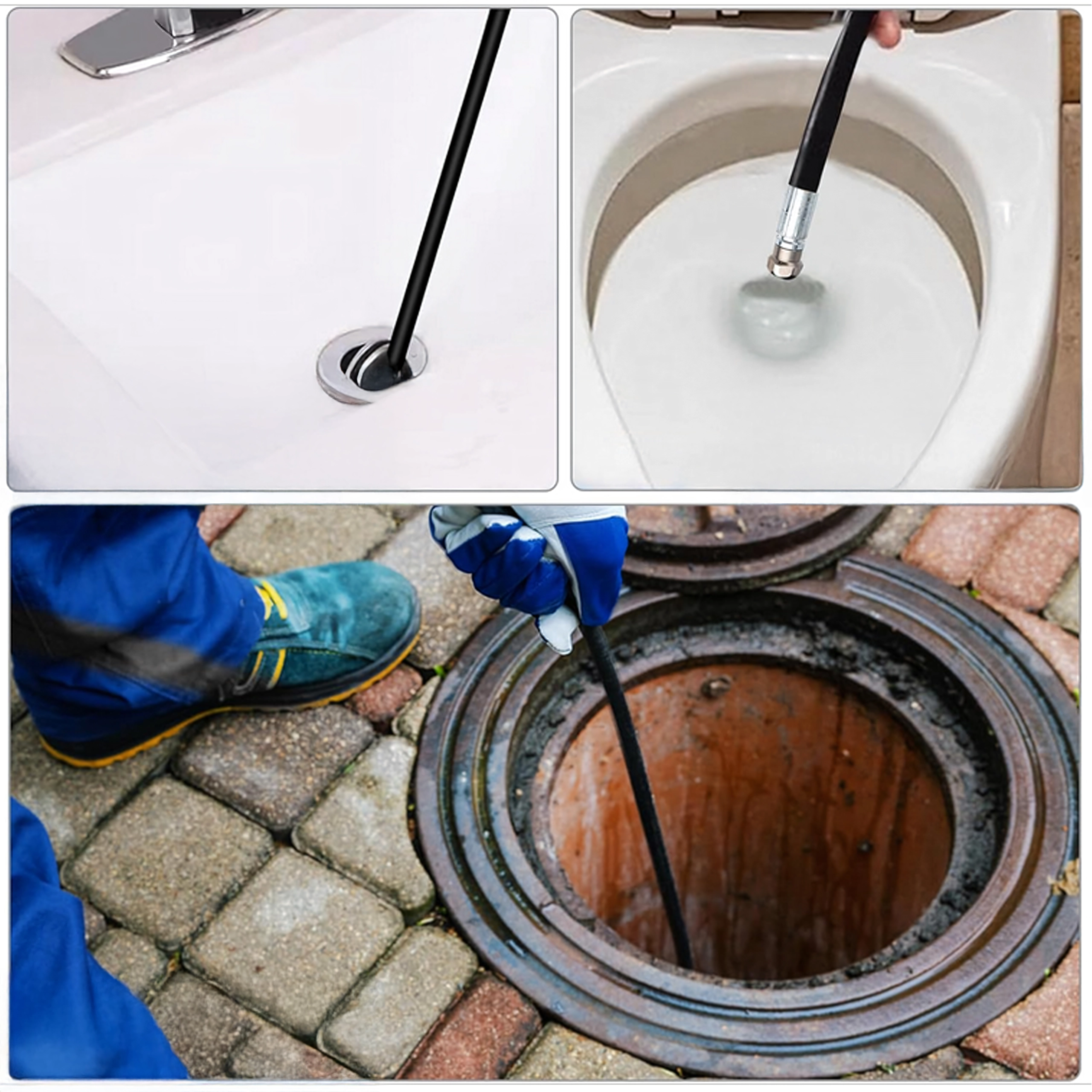 The long, supple hose reliably passes through traps and pipe bends to reach the blockage point.