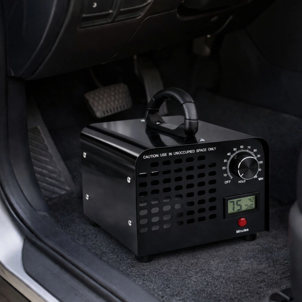 The LEAN ozone generator is a solution for fast and effective ozonation of apartments, houses, offices, and cars. Ozone penetrates upholstery, carpets, vents, and crevices, where it neutralizes sources of odor instead of masking them. The built-in fan ensures even circulation and distribution of ozone throughout the space.